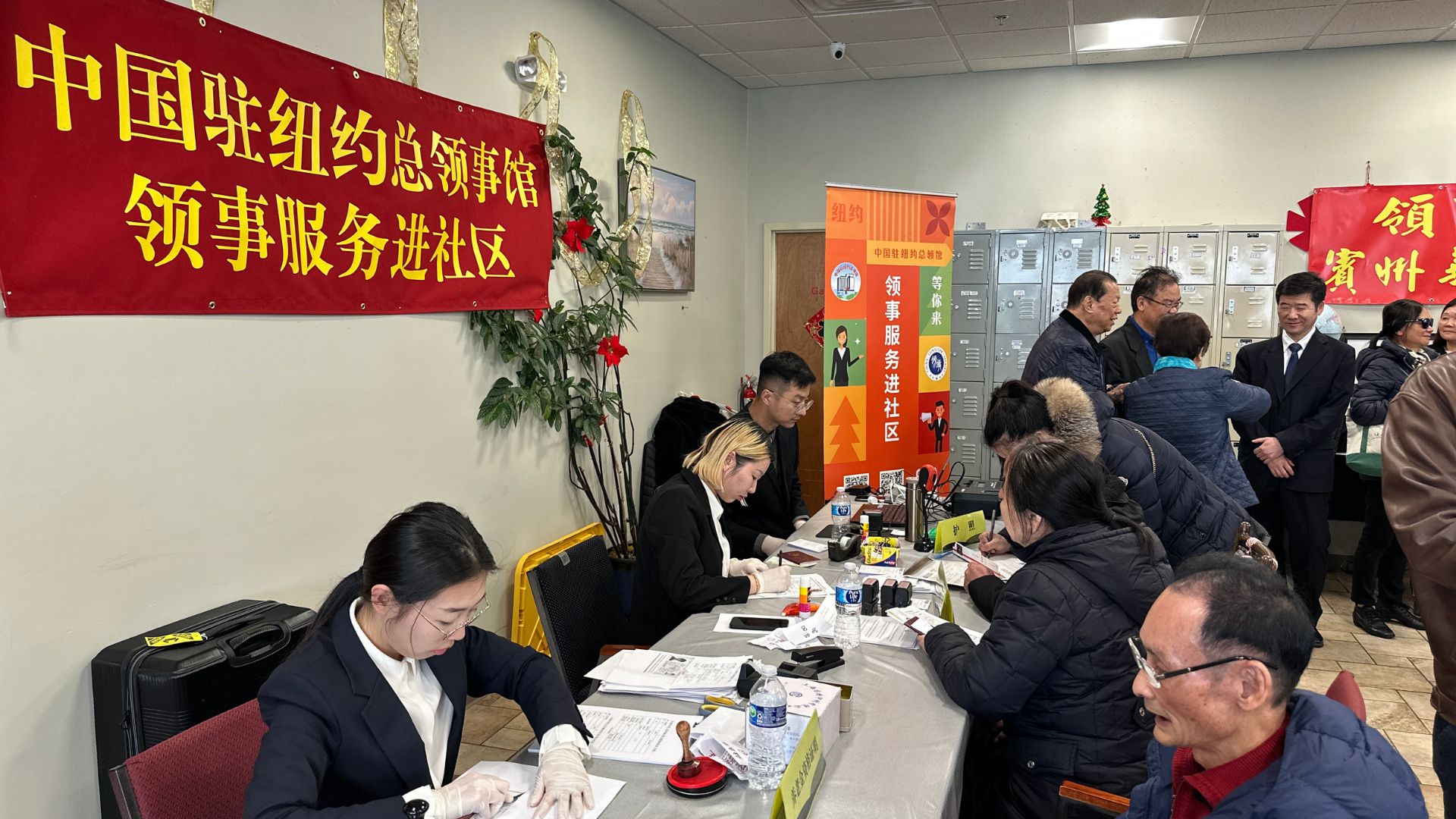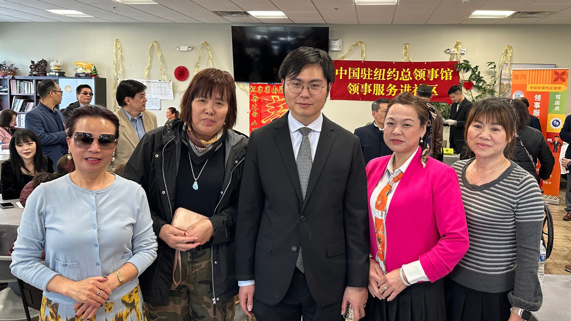 活动当天,驻纽约总领馆领事向裕韬、章锐、苏行、郭旗、黄泳霖亲临现场,与侨胞们亲切交流。向裕韬领事表示,”领事服务进社区”是总领馆心系侨胞、贴近侨胞、服务侨胞的生动体现,真正做到了便民、利民、惠民。他希望此类活动能够持续开展,并越办越好。