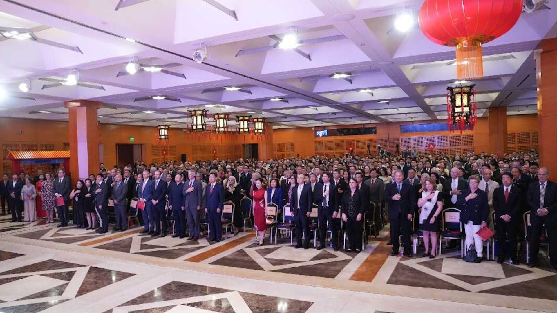 招待会现场气氛热烈,中美两国嘉宾齐聚一堂,共叙友谊、共话合作。