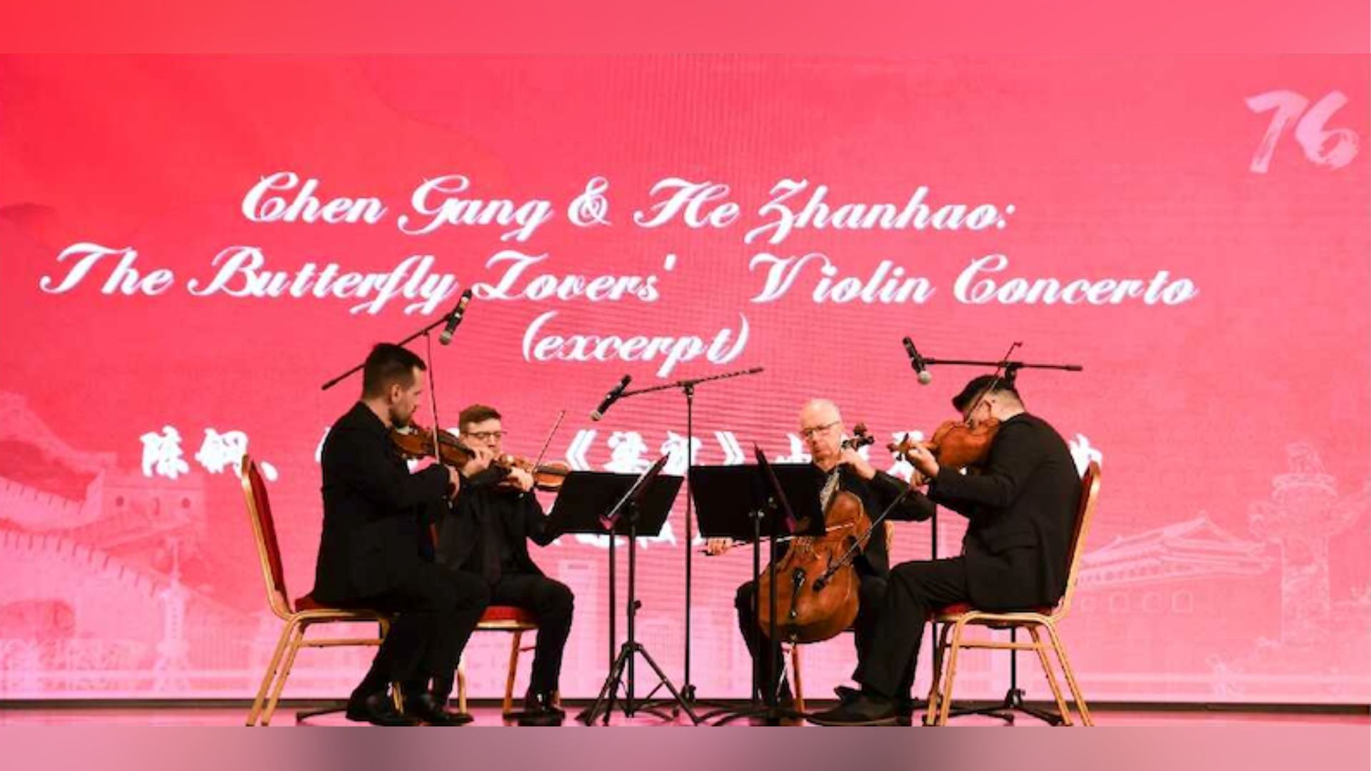活动播放了《校正航向,驶向共赢》主题视频,费城交响乐团演奏《梁祝》《赛马》等乐曲,现场掌声阵阵。