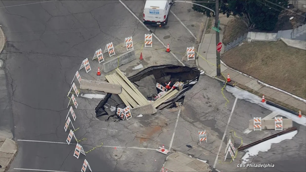 北费城因主干水管泄漏形成巨大天坑 Posted on 2026-01-072026-01-07 by Ryan 【美华社 2026年1月6日 费城讯】周二上午,费城西橡树巷(West Oak Lane)区Wister Street与Rodney Stree交叉口因地下水管破裂,形成一个巨大天坑。 据费城水务部门称,他们在周二凌晨2点左右接到报警,称有一条8英寸的主水管发生泄漏,随后工作人员成功止住了泄漏。但此次泄漏最终引发地面塌陷,形成了一个巨大的天坑。 目前,紧急救援人员正在对现场进行检查,以评估天坑对周边区域安全的影响,并敦促居民避开此地。至于修复工作需要多长时间才能完成,目前尚不明确。