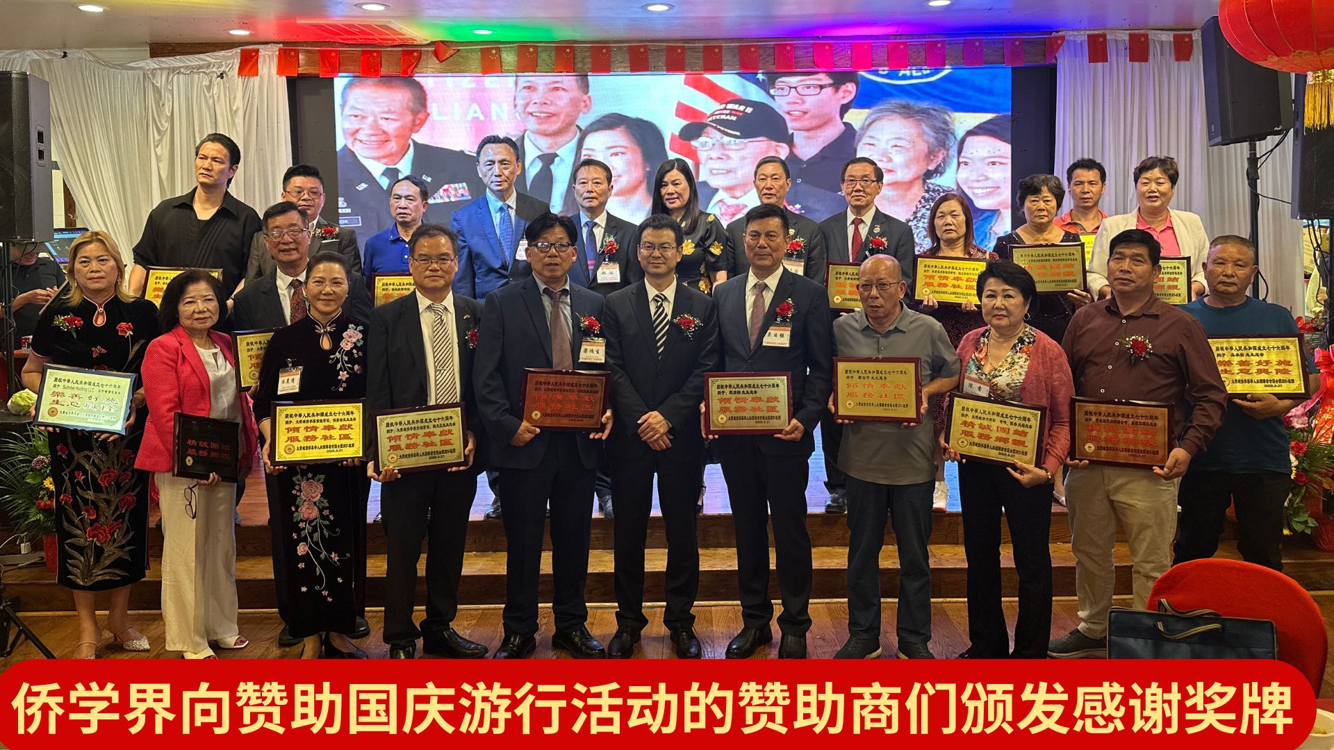 活动为 26 位对社区有突出贡献的侨领及企业家颁发奖牌,荣获奖牌的有:大费城侨学界秘书长吴日强、大费城侨学界前秘书长张天晨、大费城侨学界前秘书长任美清、大费城侨学界前秘书长梁鸿生、大费城侨学界前秘书长王建明、费城福建同乡联合会主席郑麟、宾州华人工商联合总会会长盘玉兰、 大费城华侨公会会长张应钦、宾州印支华裔老人相济会会长周昭真、大费城潮州会馆黄坤、陈香夫妇、费城福建同乡联合会议长卢统云、费城福建同乡联合会第一常务副会长林锦水、林记拉面老板林国俤先生、美国福州香炉同乡会理事长陈家端、美国福州香炉同乡会秘书长陈天兴、美国福州香炉同乡会常务副会长陈和新、 美国复州香炉同乡会常务副会长陈和顺、美国福州香炉同乡会常务副会长吴日星、恒发海鲜贸易商行 刘德榕 董事长、大世界超市 郑善飞 董事长、新金兴批发公司 李世兴 董事长、Sunrise Holding LLC 吕玲 董事长、亚洲银行 王怡康 董事长、吴水崧先生、刘广榕先生、刘官年先生。