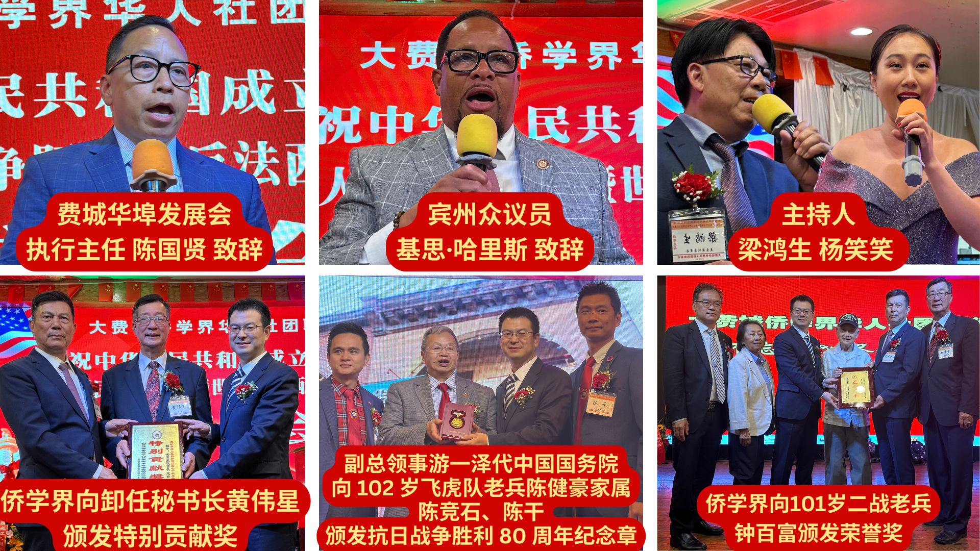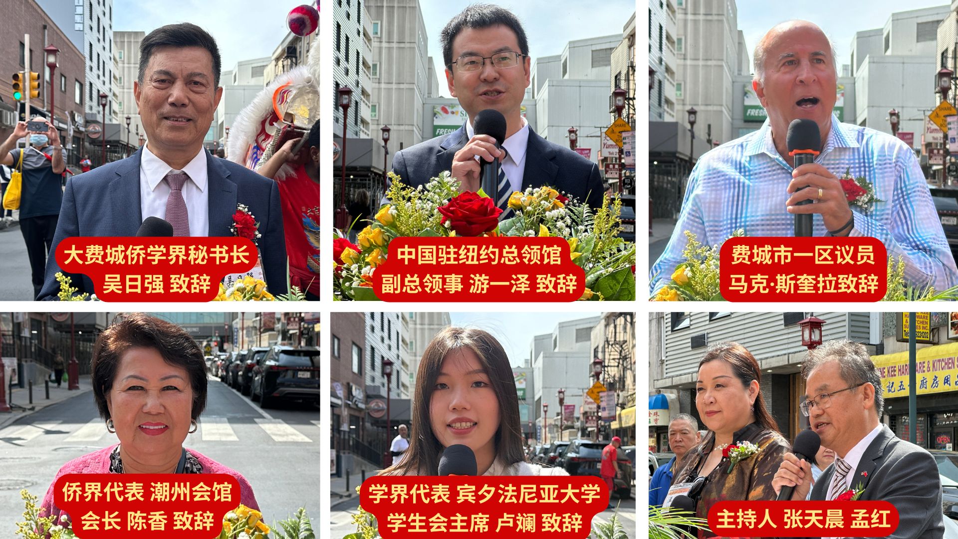 费城市议员马克·斯奎拉(Mark Squilla)、侨界代表潮州会馆陈香主席、学界代表宾夕法尼亚大学学生会主席卢斓先后致辞,分别表达对华人社区贡献的认可、对祖国发展的自豪及青年一代传承中华文化的决心。