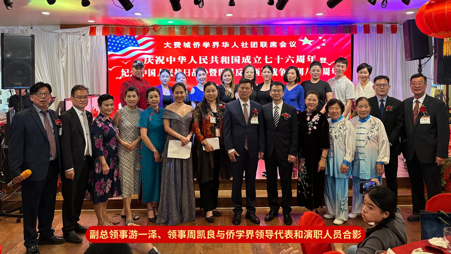 宴会于全体共同主席敬酒及集体歌舞环节中圆满结束。此次系列活动充分彰显了大费城侨学界的爱国情怀,成功搭建起中美民间交流的桥梁。海外侨胞将持续凝心聚力,为祖国的复兴以及中美之间的友好合作贡献自身力量。