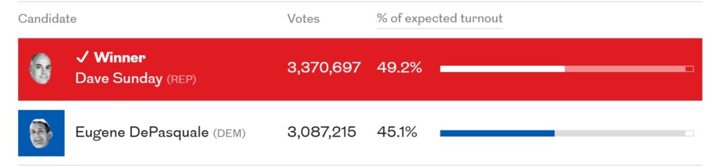 宾夕法尼亚州共和党在选举中赢得三大重要职位 Posted on 2024-11-072024-11-07 by Ryan 在刚刚结束的选举中,共和党赢得了宾夕法尼亚州的几个重要职位,包括总检察长、财政部长和审计长的选举胜利。 州总检察长:约克县地方检察官戴夫·周日(Dave Sunday)击败民主党挑战者尤金·德帕斯夸莱(Eugene DePasquale),成为宾夕法尼亚州的新任总检察长。 州财务部长:现任财政部长斯泰西·加里蒂(Stacy Garrity)在竞选中胜出,成功连任。 州审计长:蒂姆·德福尔(Tim DeFoor)也在竞选中保持了他的职位,连任审计长。