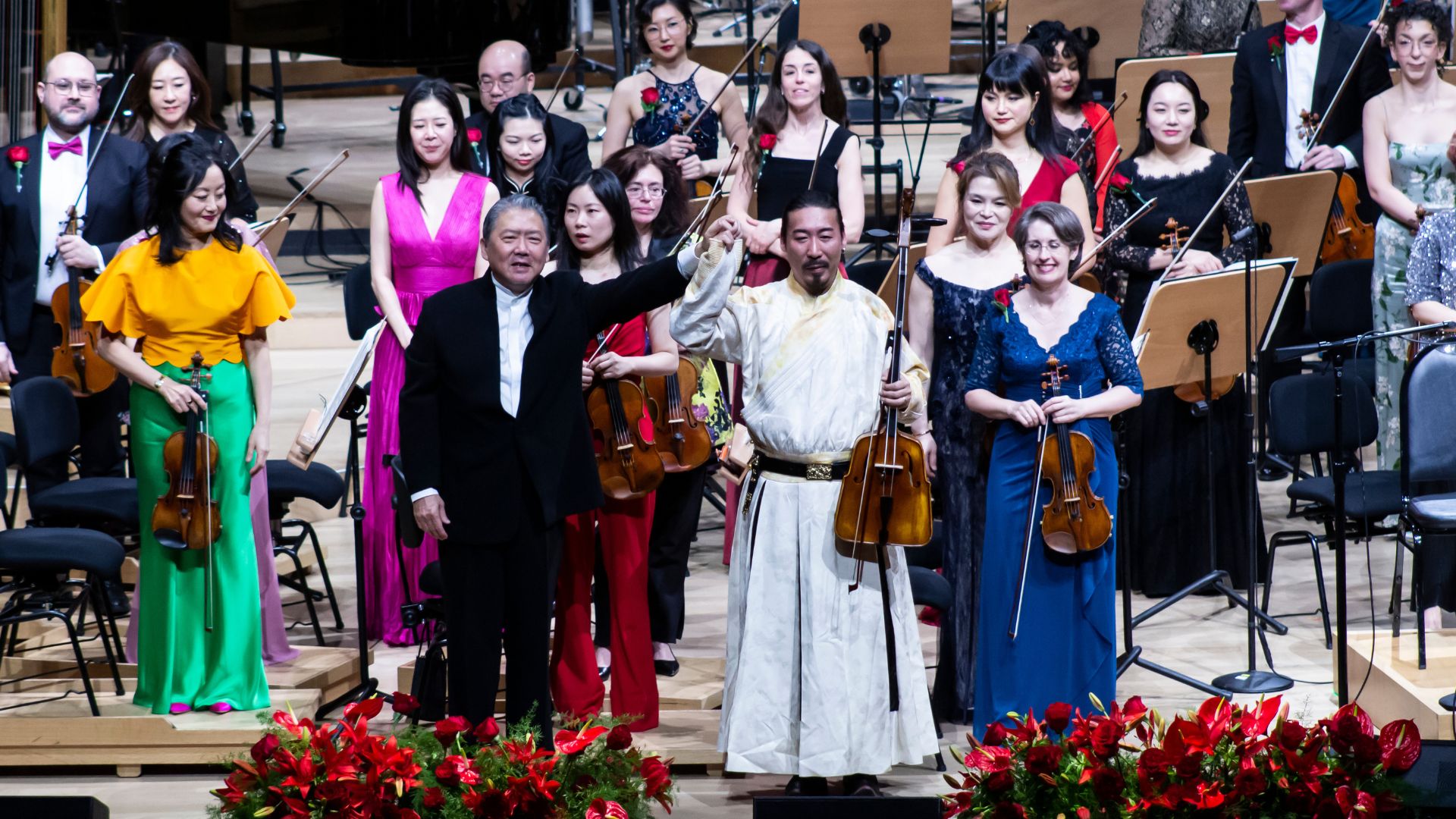 在Leonard B在Leonard Bernstein《老实人》序曲之后,乐团带来与“马年”主题呼应的黄海怀《赛马》。蒙古族马头琴演奏家、呼麦歌者哈斯巴根首次亮相纽约爱乐乐团,献上马头琴与乐队狂想曲《念》(邹野编配),独特民族音色与交响乐的融合赢得全场热烈掌声。
