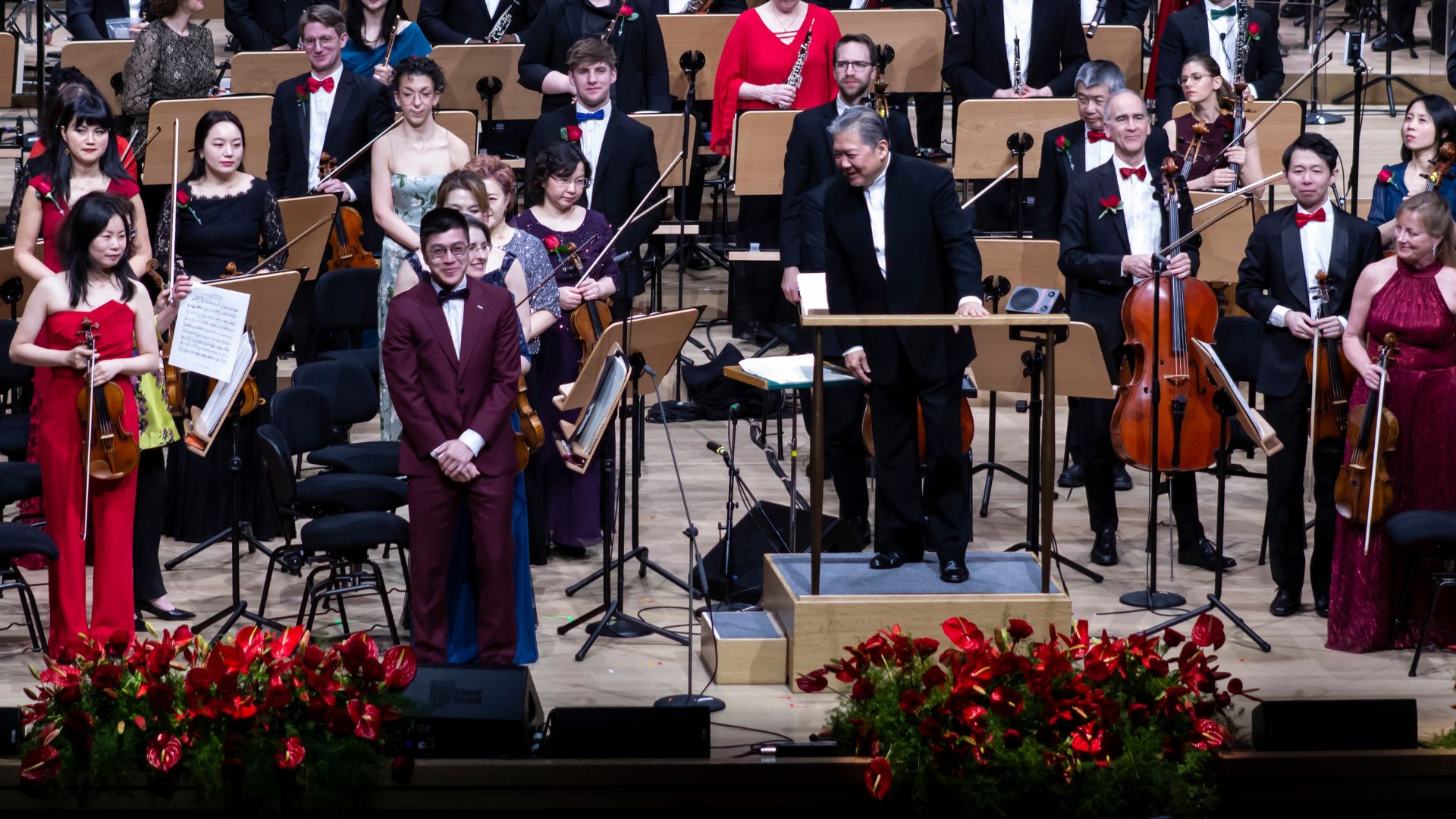 音乐会在美国作曲家Aaron Copland的《平凡人的号角》与中国作曲家李焕之的《春节序曲》中拉开帷幕,象征中西文化的交汇与新春的喜庆吉祥。