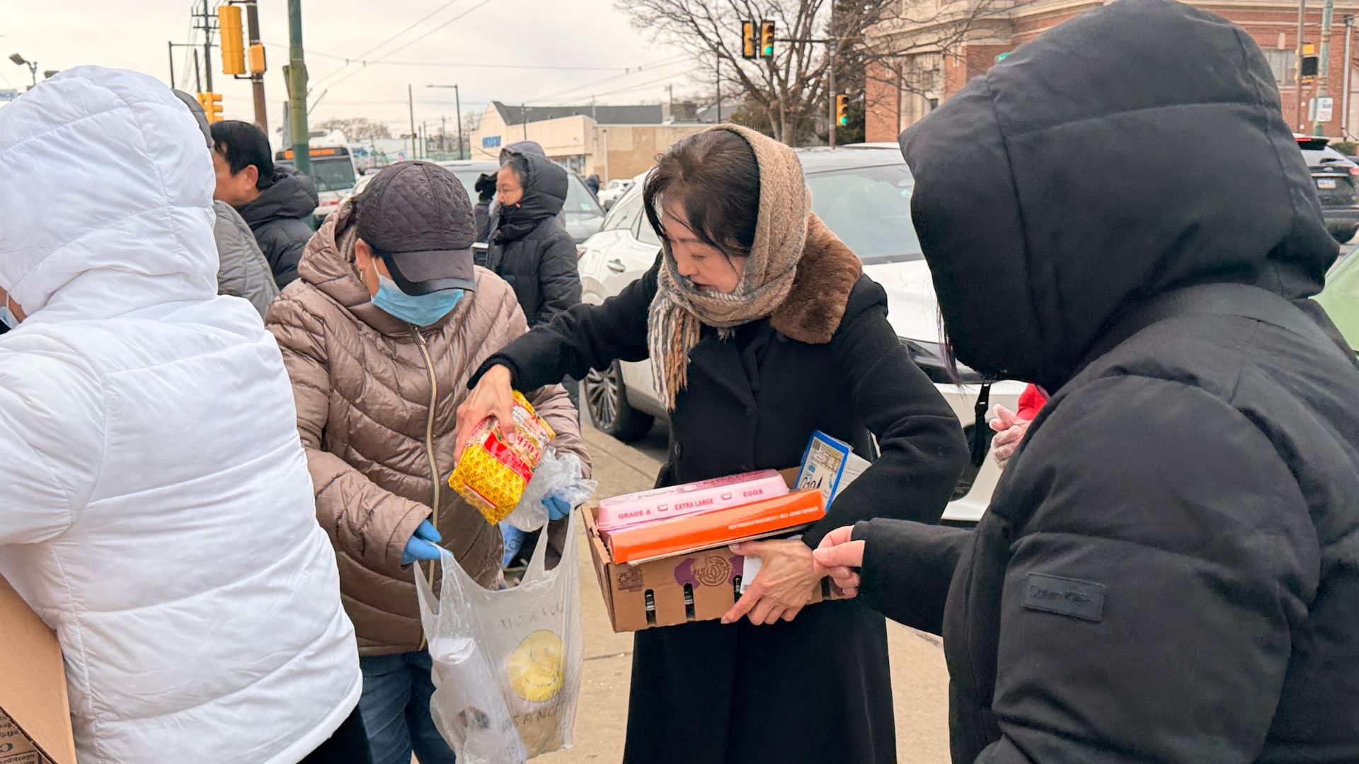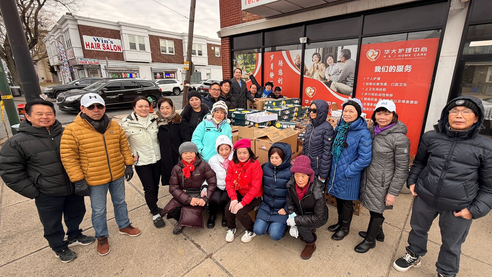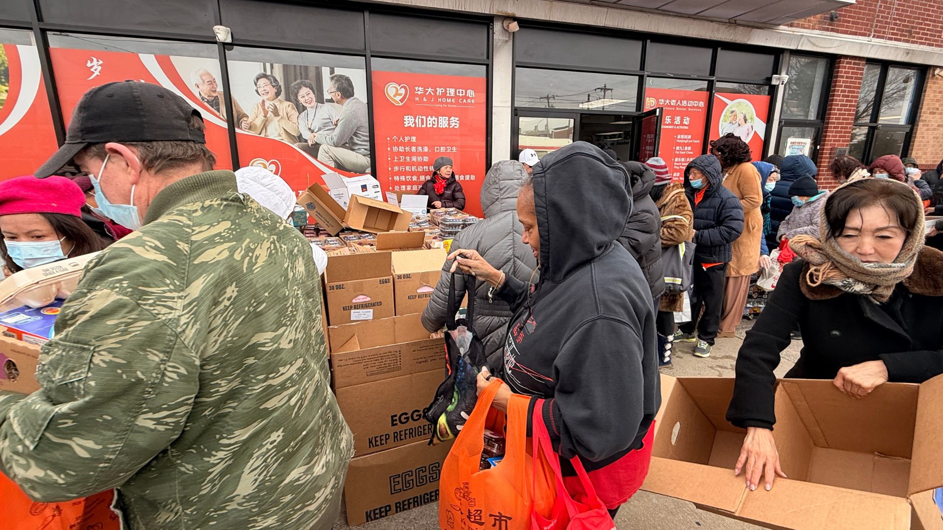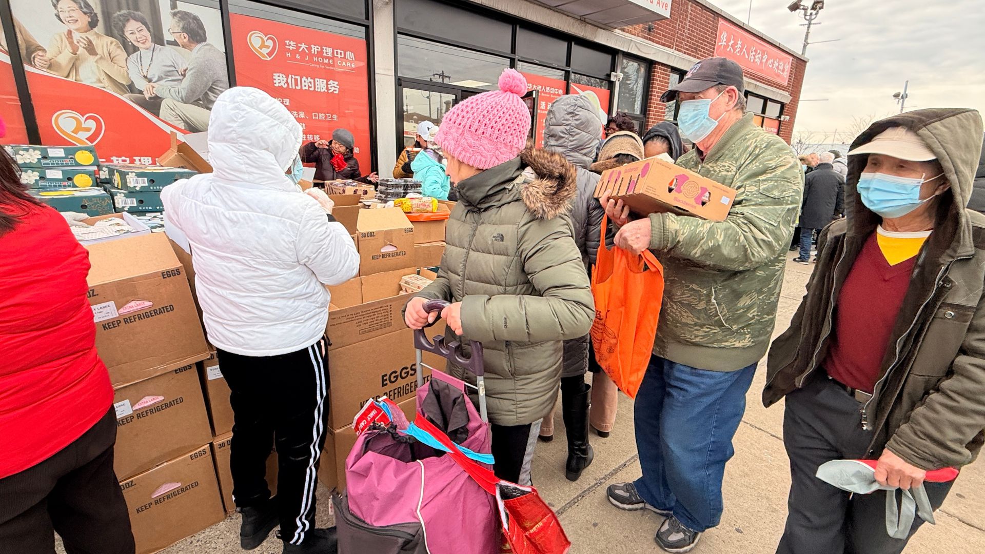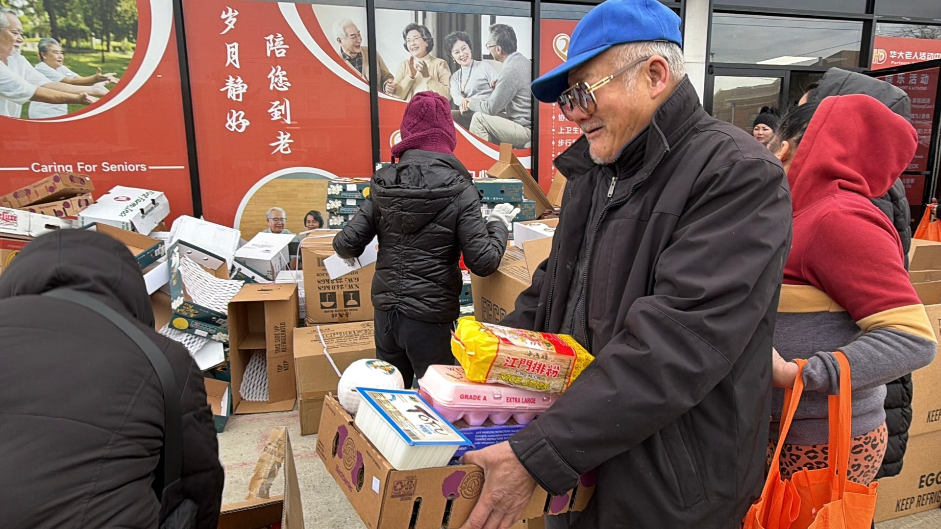 此次受益群体以费城东北区低收入家庭,华人老人、部分其他族裔居民共享这份跨族群暖意。当日气温偏低,贴心的领取流程,社区领导、自愿者们和华大的工作人员引导居民先在室内领号、再分批室外领取,既保障了分发效率,又最大限度守护了居民身体健康,细节之处尽显双方对社区乡亲的细致呵护与责任担当。
