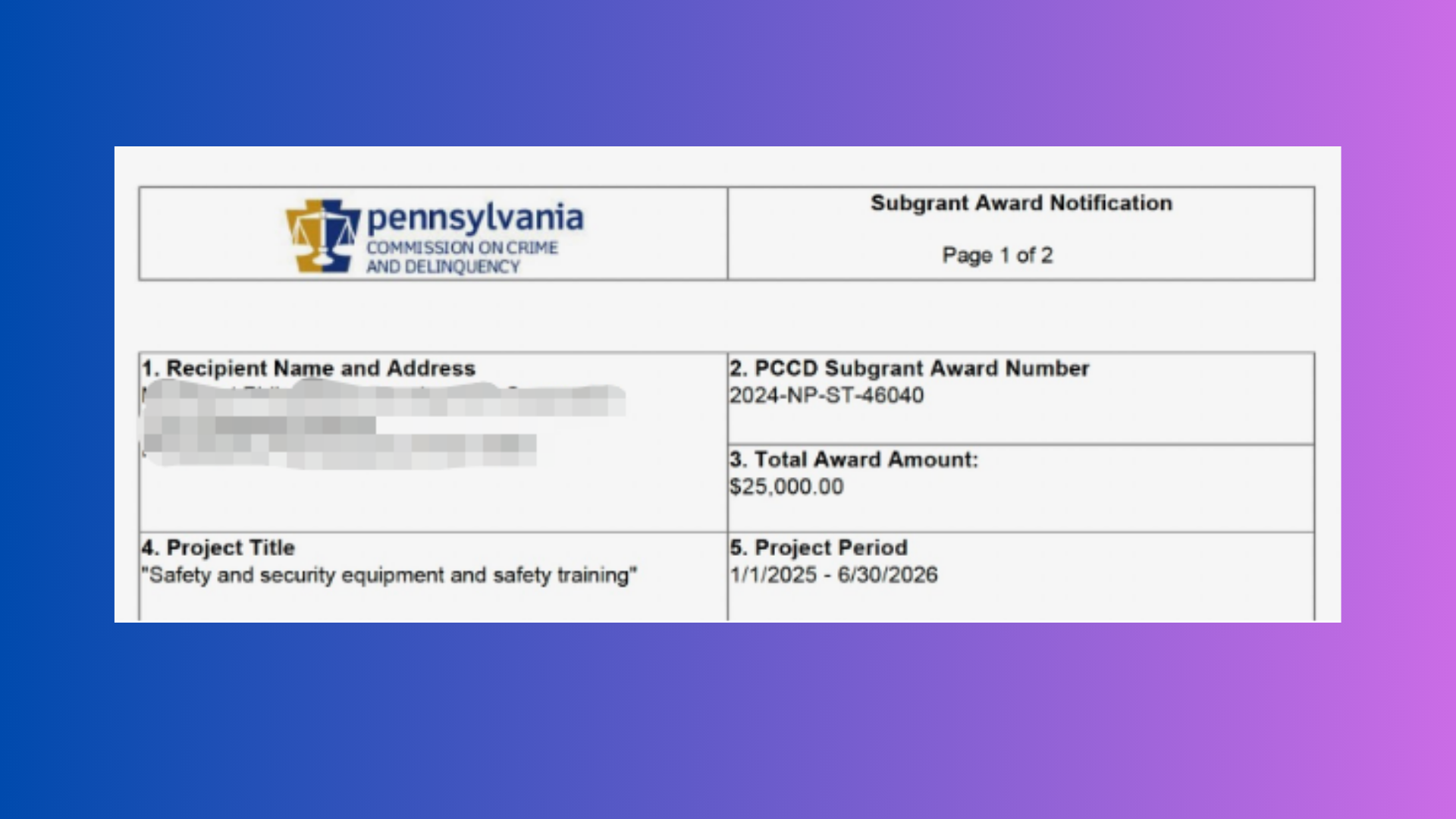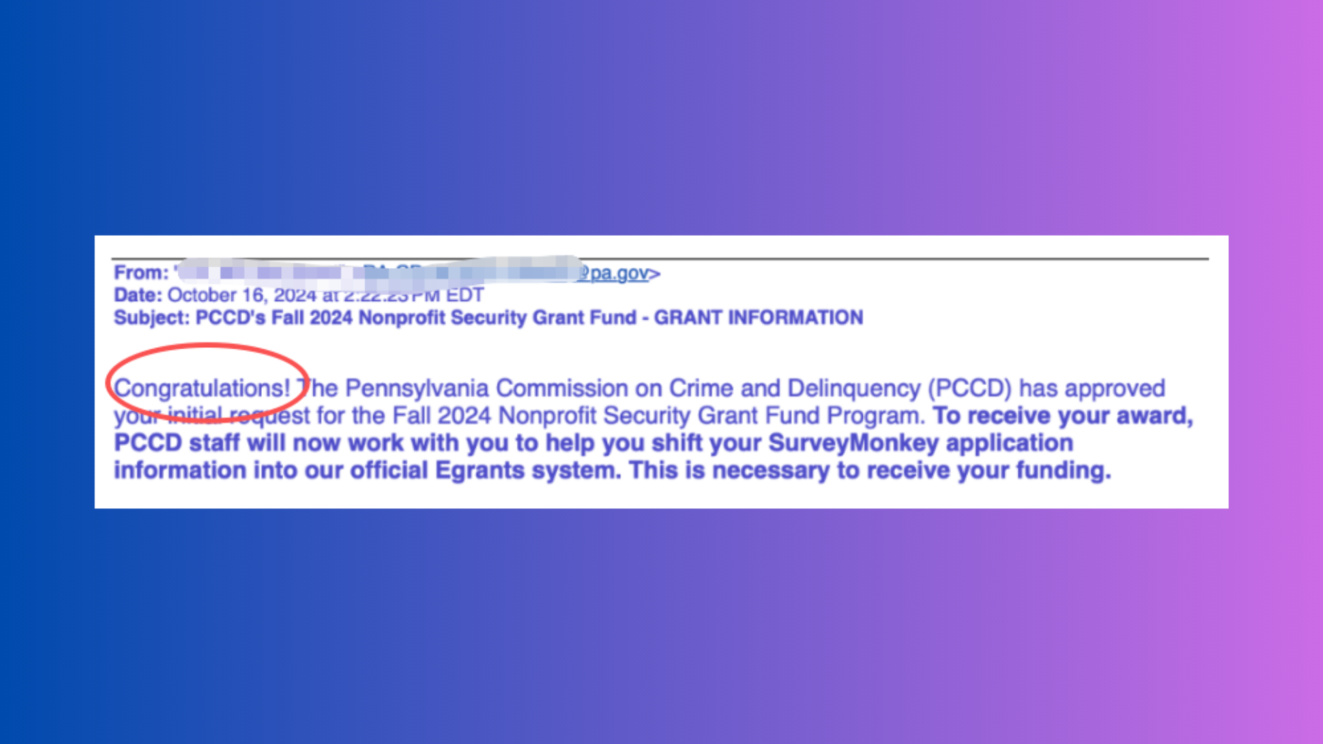 但在宾夕法尼亚州的安全补助项目中,这类通知通常只代表申请通过初步审核,后续仍需要完成一系列行政流程。