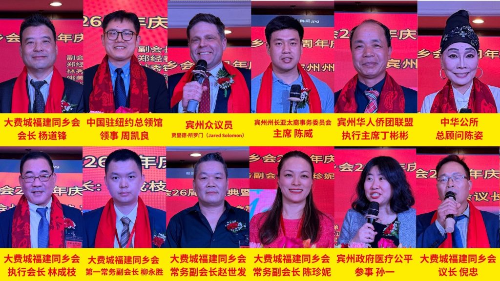 随后,宾州众议员贾里德·所罗门(Jared Solomon)、宾州州长亚太裔事务委员会主席陈威、宾州华人侨团联盟执行主席丁彬彬、中华公所总顾问陈姿、宾州政府医疗公平参事孙一、大费城福建同乡会议长 倪忠等嘉宾依次致辞,对同乡会26年来的会务成果表示祝贺,并祝愿同乡会未来发展更加兴旺。