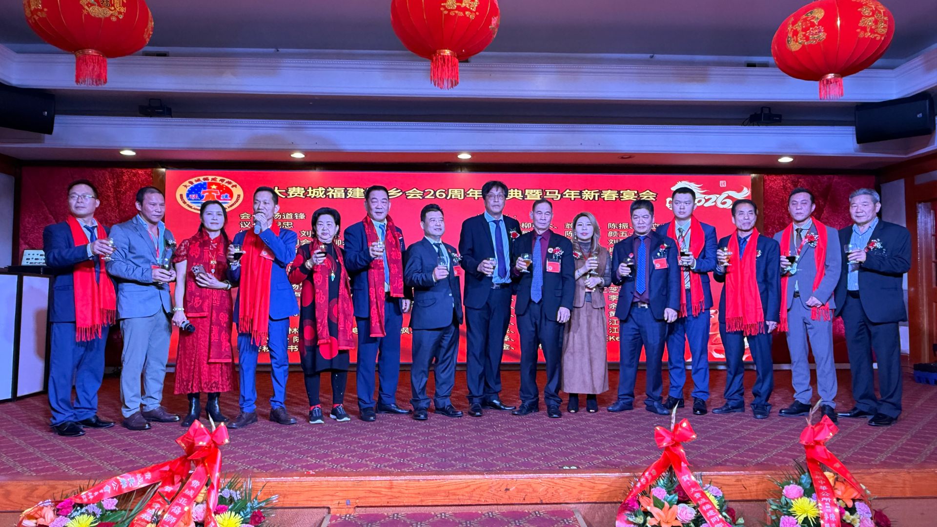 【美华社 2026年3月11日 费城讯】大费城福建同乡会丙午马年新春庆典暨成立26周年会庆晚宴日前在南费城华达大酒楼举行。当地政要、警局代表、侨界同仁400余人齐聚一堂,共贺新春、共庆会庆,现场气氛喜庆热烈、乡情浓厚。