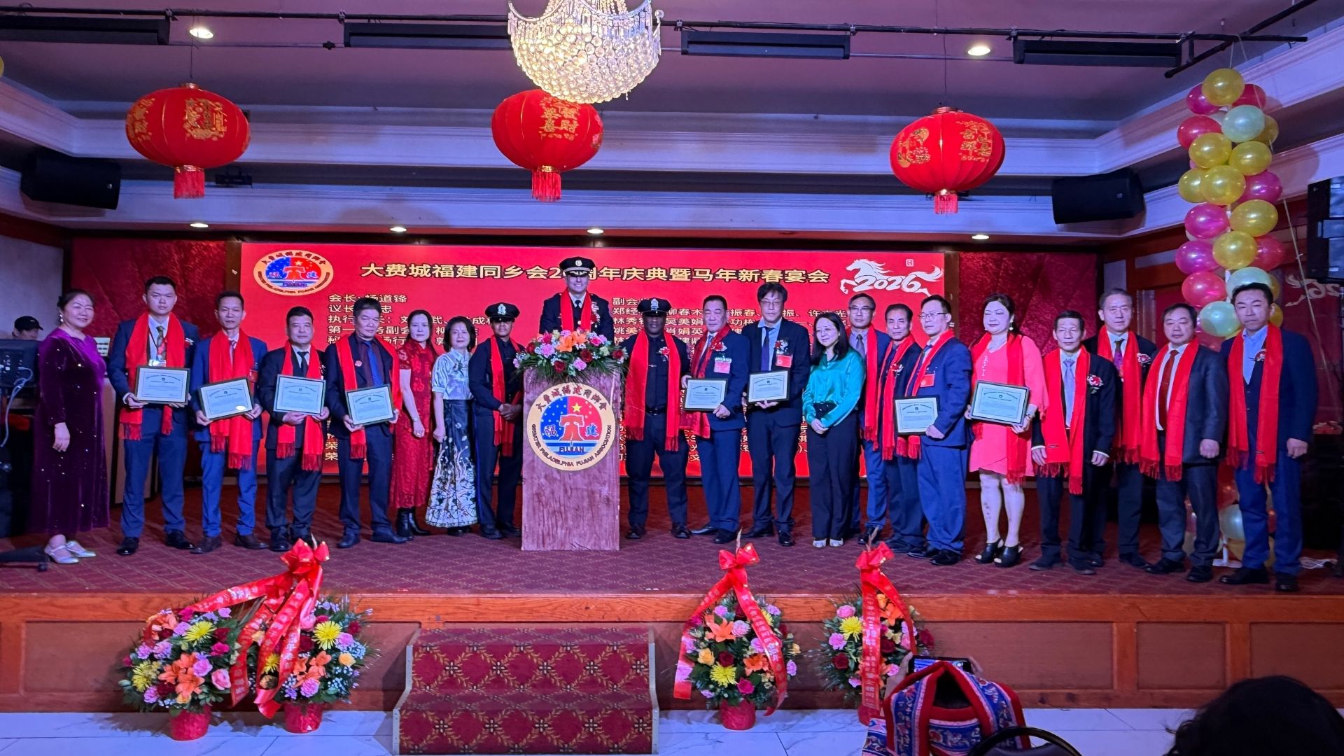 杨道锋还回顾了同乡会近年来参与社区活动的情况,包括1月19日参加马丁·路德·金纪念活动,以及8月协办纪念抗战胜利80周年座谈会等。他感谢各界长期以来的支持,并表示未来将继续带领团队服务乡亲、推动侨团发展,同时祝愿广大乡亲新春安康、阖家幸福。