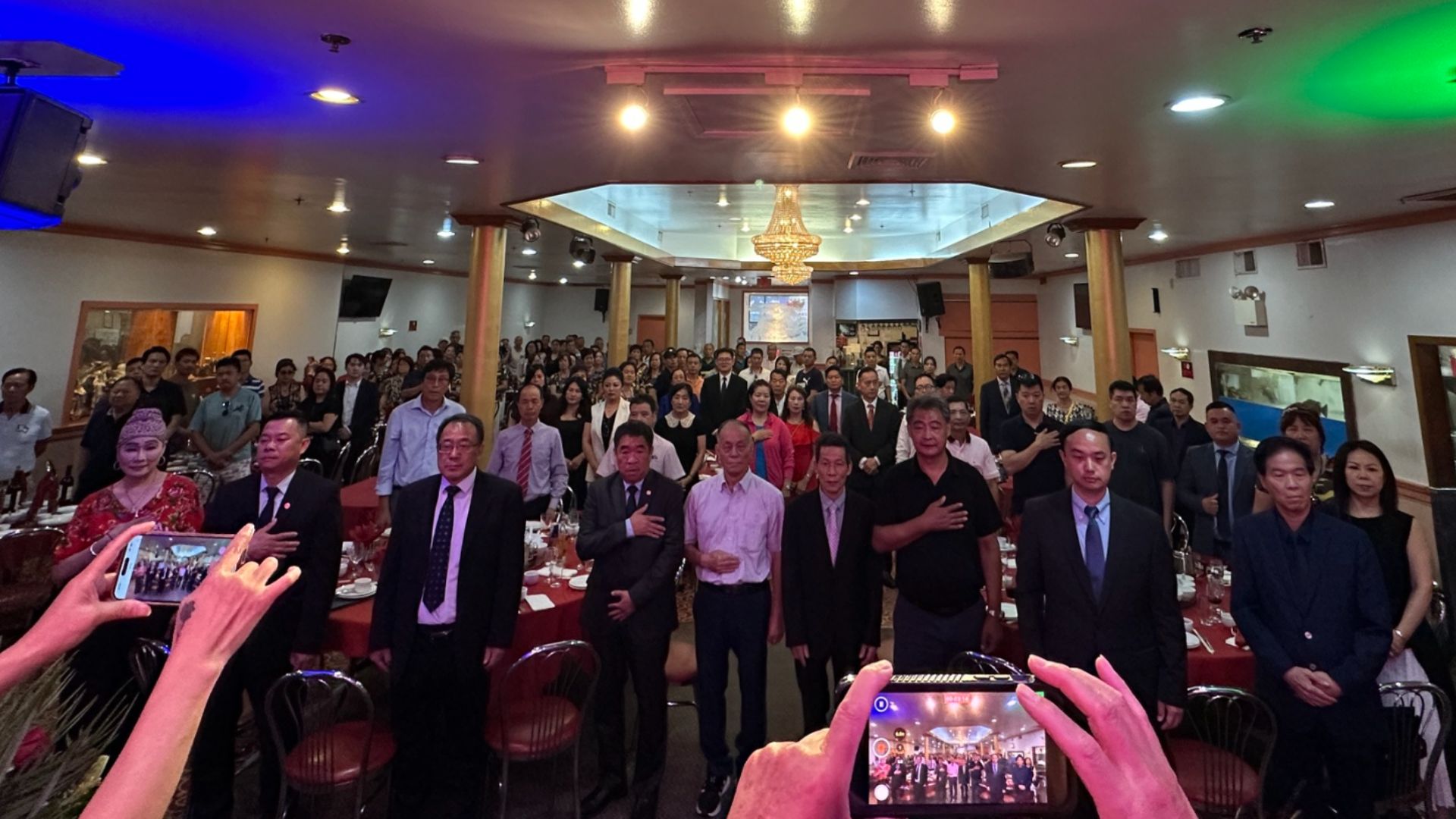 座谈会后,倪忠主持了多场合影环节:驻纽约总领馆官员先与联盟共同主席合影,随后大费城福建同乡会、费城华人餐馆协会、费城长乐公会、费城连江同乡会、宾州福建商会、费城福建猴屿联谊会、费城华人妇女联合会、协胜公会、中华公所、世界孙中山基金会、美国梅洋同乡会、美国费城妈祖文化交流协会暨北美莆仙同乡联谊会等20余个侨团按序与领馆及联盟领导合影,镜头定格下侨界团结的珍贵画面。活动在温馨的晚宴中圆满落幕。