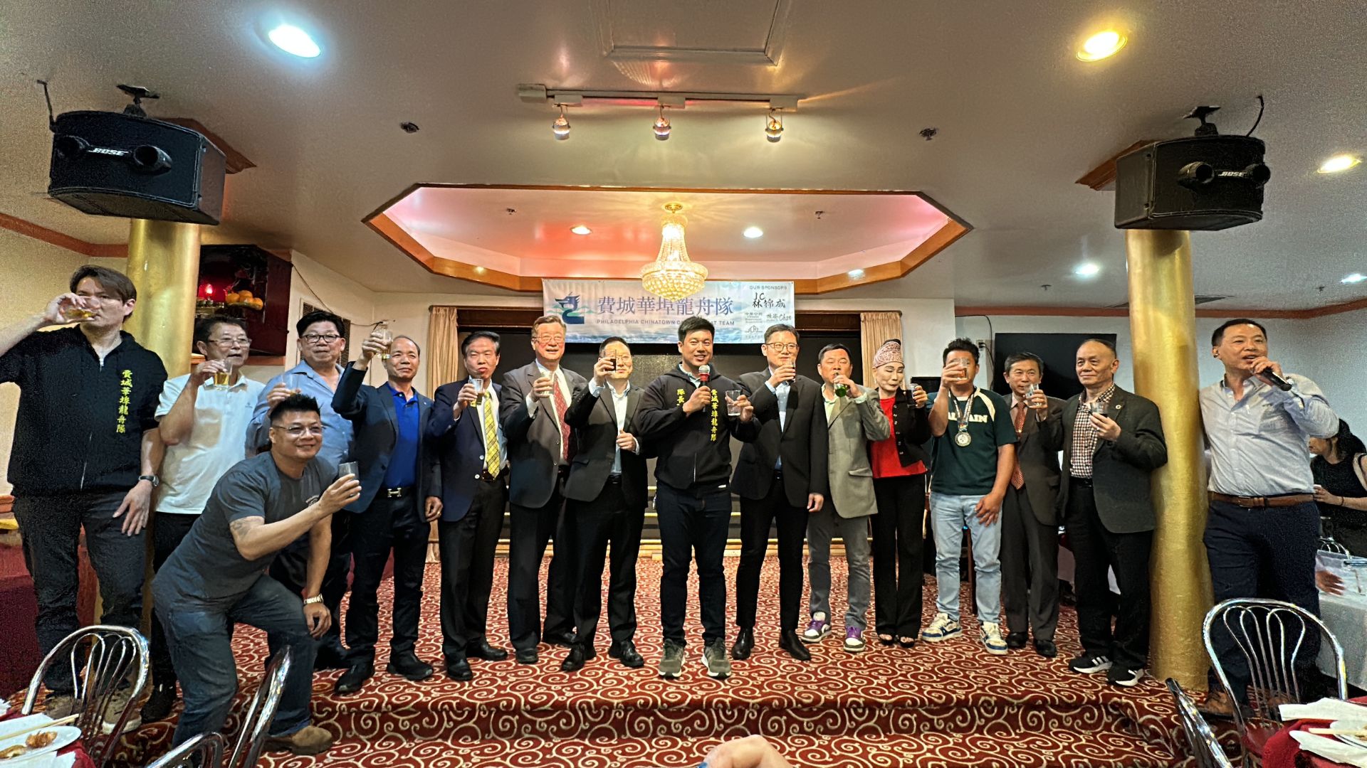 【CUS 美华社・费城讯】2025年6月1日晚,费城华埠龙舟队在聚福金阁隆重举行年度端午庆典晚宴。来自费城各界的社区领袖、侨界人士、龙舟队员及亲友齐聚一堂,共庆端午佳节,弘扬中华文化。值得一提的是,中国驻纽约总领馆周凯良领事与陈曲锋领事亲临现场,带来节日的祝福并见证龙舟文化在美东侨社的传承与发展。
