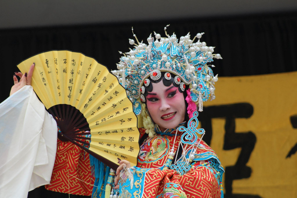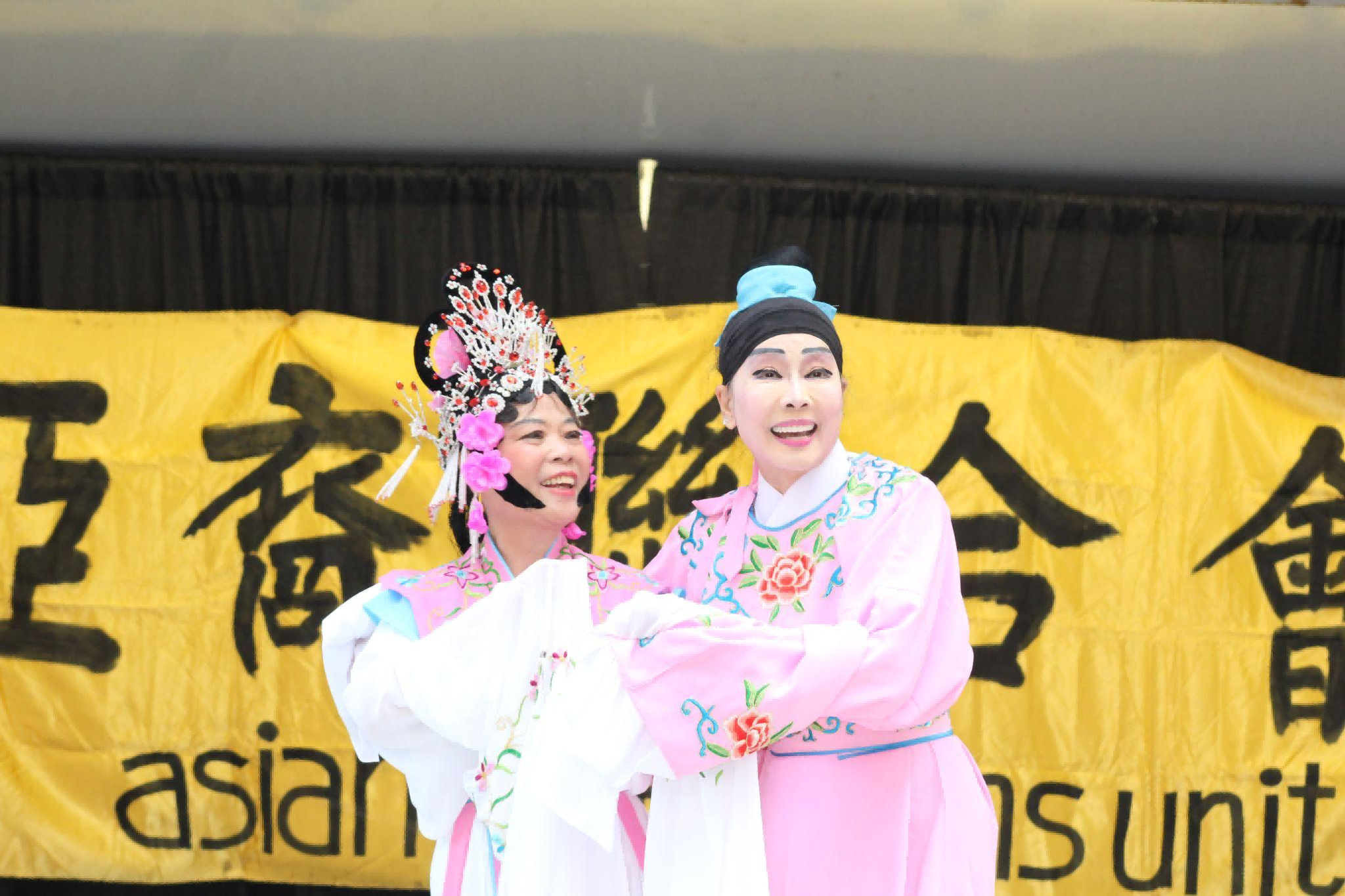 表演者:王虹;指导老师:李淑媛; 费城京剧社。表演旗袍扇子舞:《万水千山 总是情》,《红枣树》。表演舞者:胡赛兰,杨月英,颜五一, 江宇芳,卢秀琴,林娟,王秀芳,施文玉。