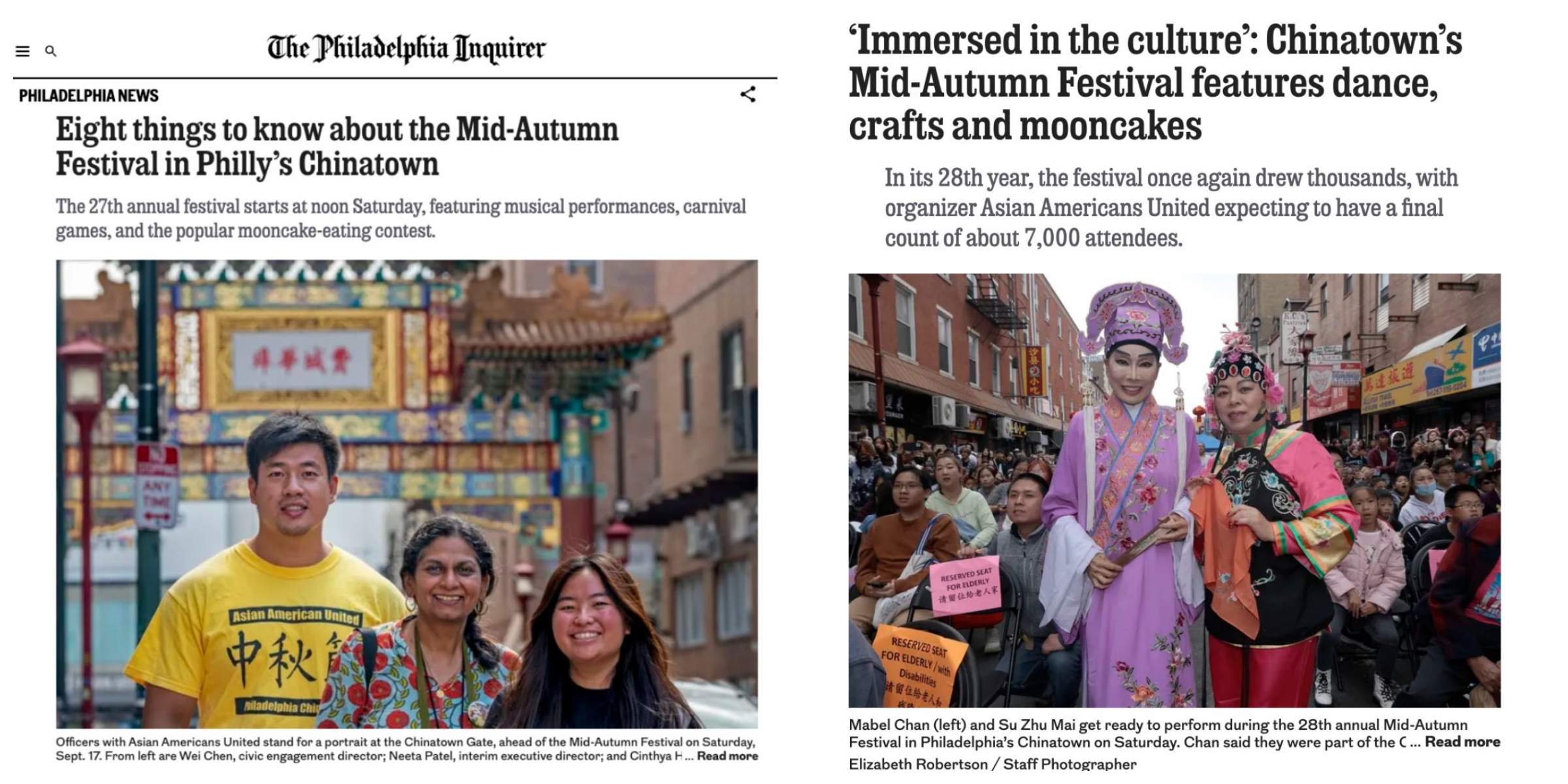 如今,2023年9月30日,AAU亚裔联合会主办的历史最悠久、规模最盛大的华埠中秋嘉年华–这一活动已经成为费城中国城不可或缺的一部分,它展示了社区的团结和文化的传承。这个中秋庆典象征着对家乡的思念,同时也庆祝着多元文化的美好交融。在这里,我们共同欢庆中秋的传统,共享文化的盛宴,创造美好的回忆。
