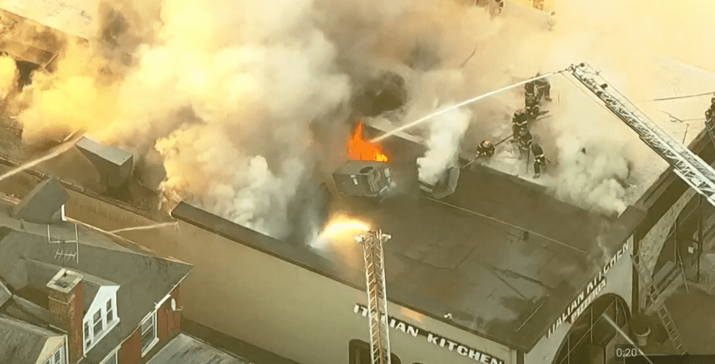 费城披萨店火灾,65名消防员紧急出动 Posted on 2023-09-072023-09-07 by Ryan 周三早些时候,费城奥弗布鲁克Overbrook区北63街2000街区的”Italian Kitchen Pizzeria II”餐厅发生火灾,浓烟弥漫在城市上空。 费城消防局PFD在社交媒体上发布消息表示,上午9时39分,经65名消防员三个小时的努力,大火终于被扑灭。 BY NBC10 目前尚不清楚起火原因,也不清楚是否有人受伤。