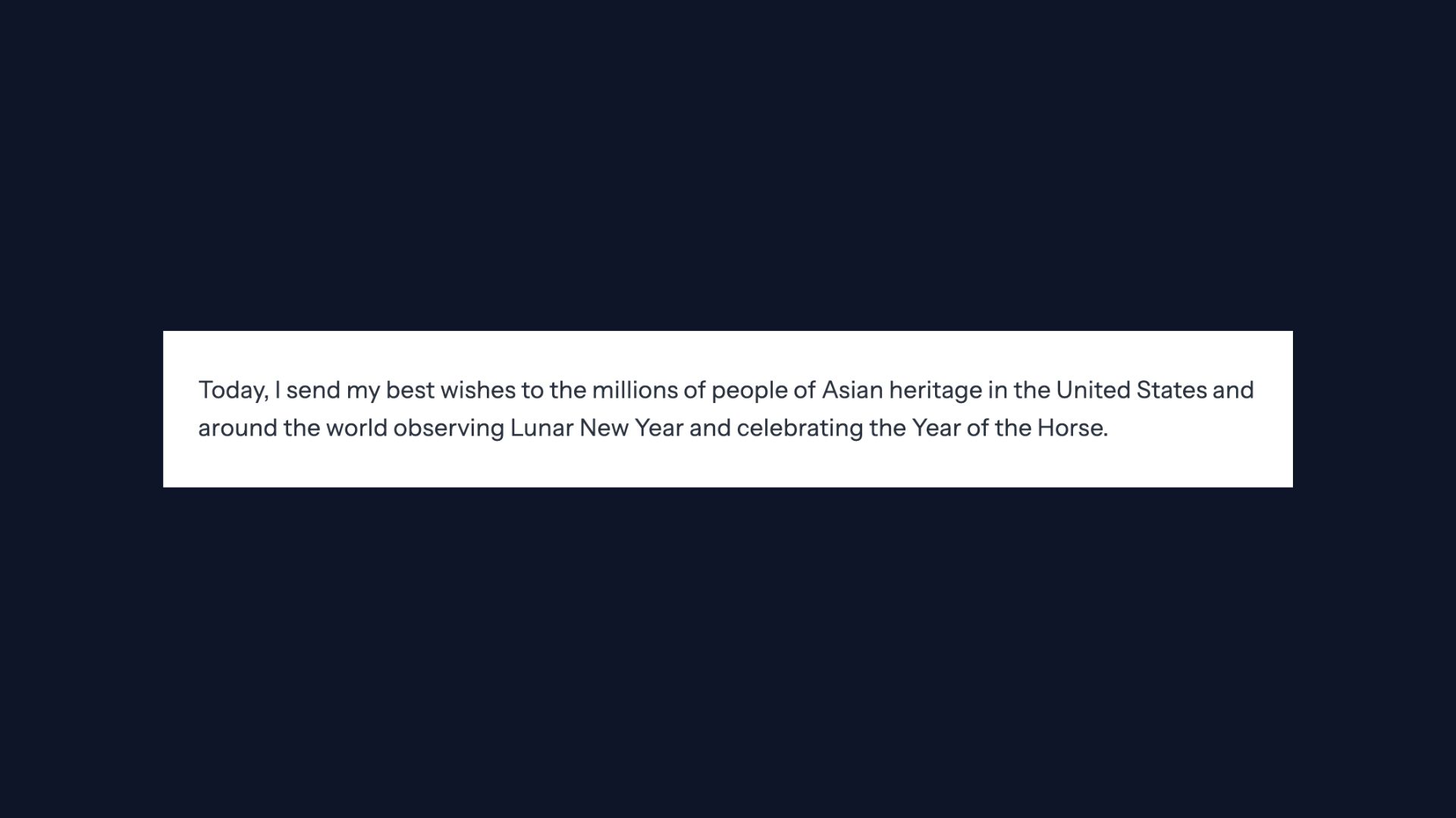 【美华社 2026年2月17日 华盛顿特区讯】白宫发布总统农历新年贺信。以下为贺信中文译文。