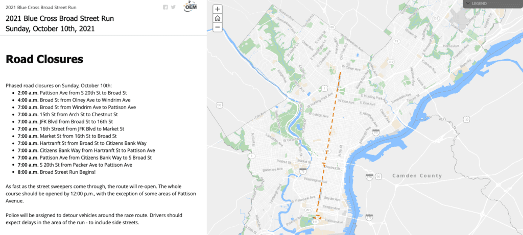 居民们可以通过查看网站2021 Blue Cross Broad Street Run来了解比赛将如何影响他们的地区。