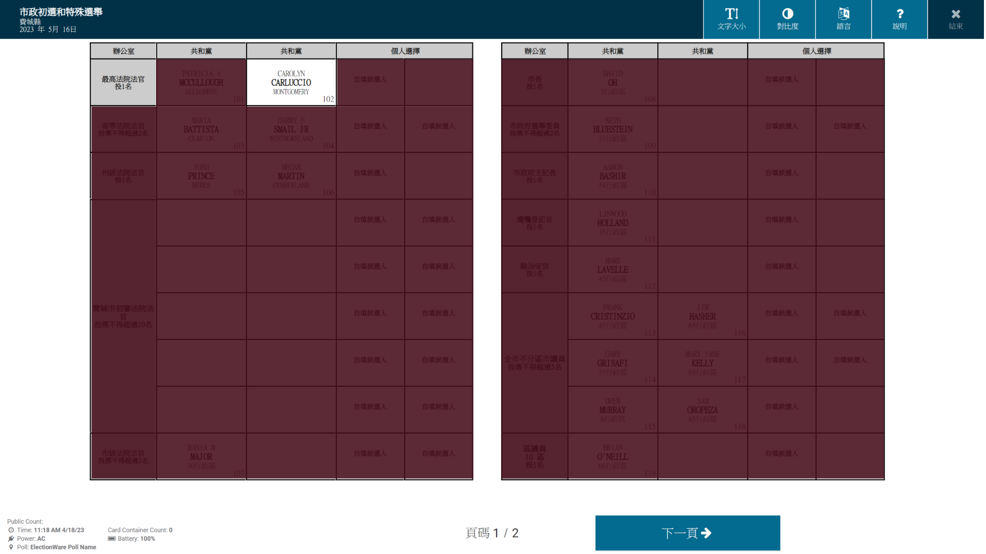 2023选举 I Election 选举 I Election 最高法院大法官(共和党)候选人-PATRICIA A MCCULLOUGH #101 Ryan 2023-05-16 0 Patricia McCullough(共和党)是 […]